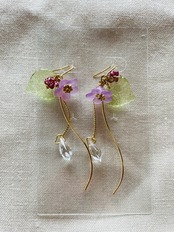 紫の花と紫のビーズボールが果実のようなピアスです。