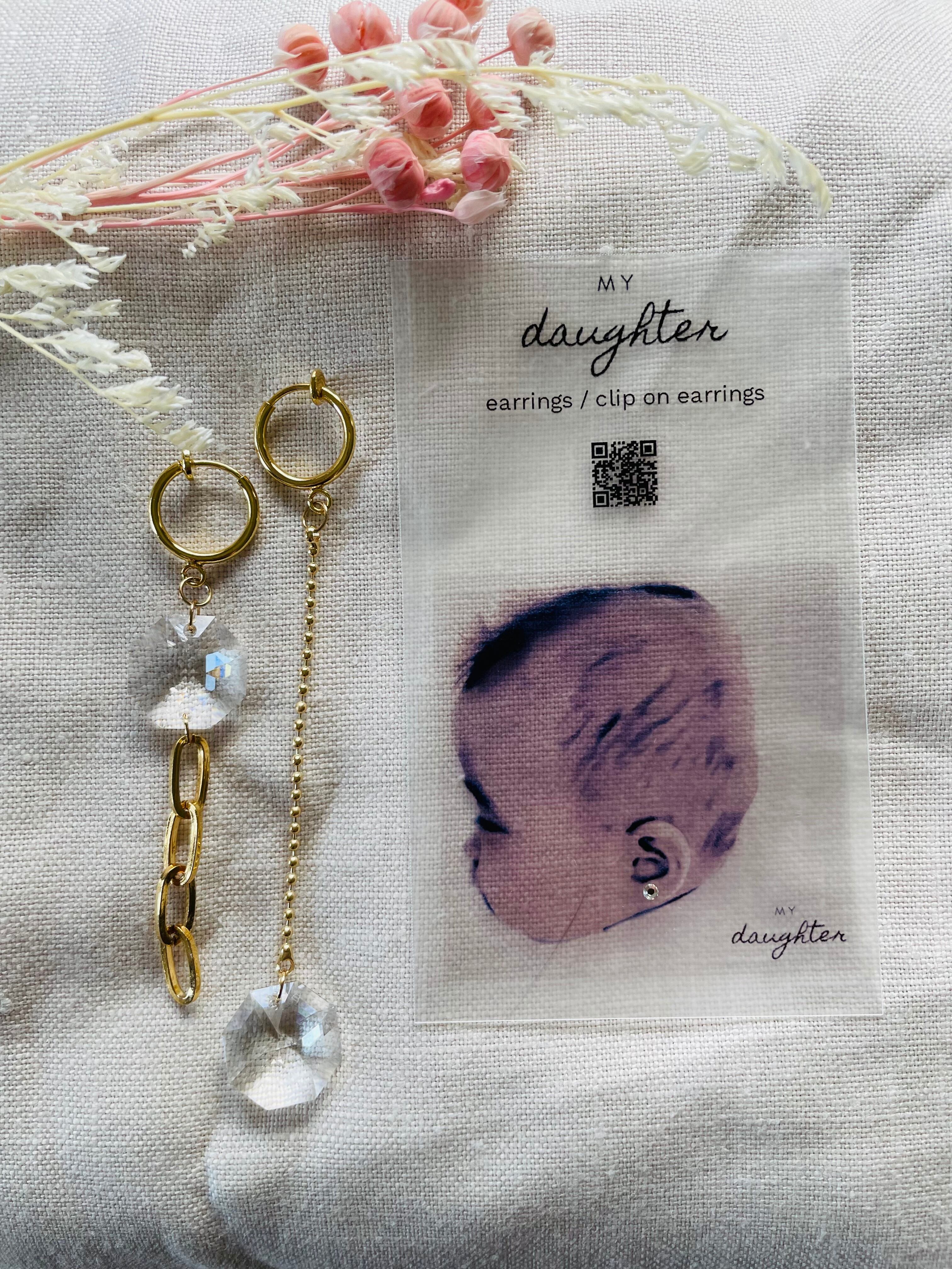 8角形のスワロフスキーとゴールドチェーンのアシンメトリーイヤリング(0058)