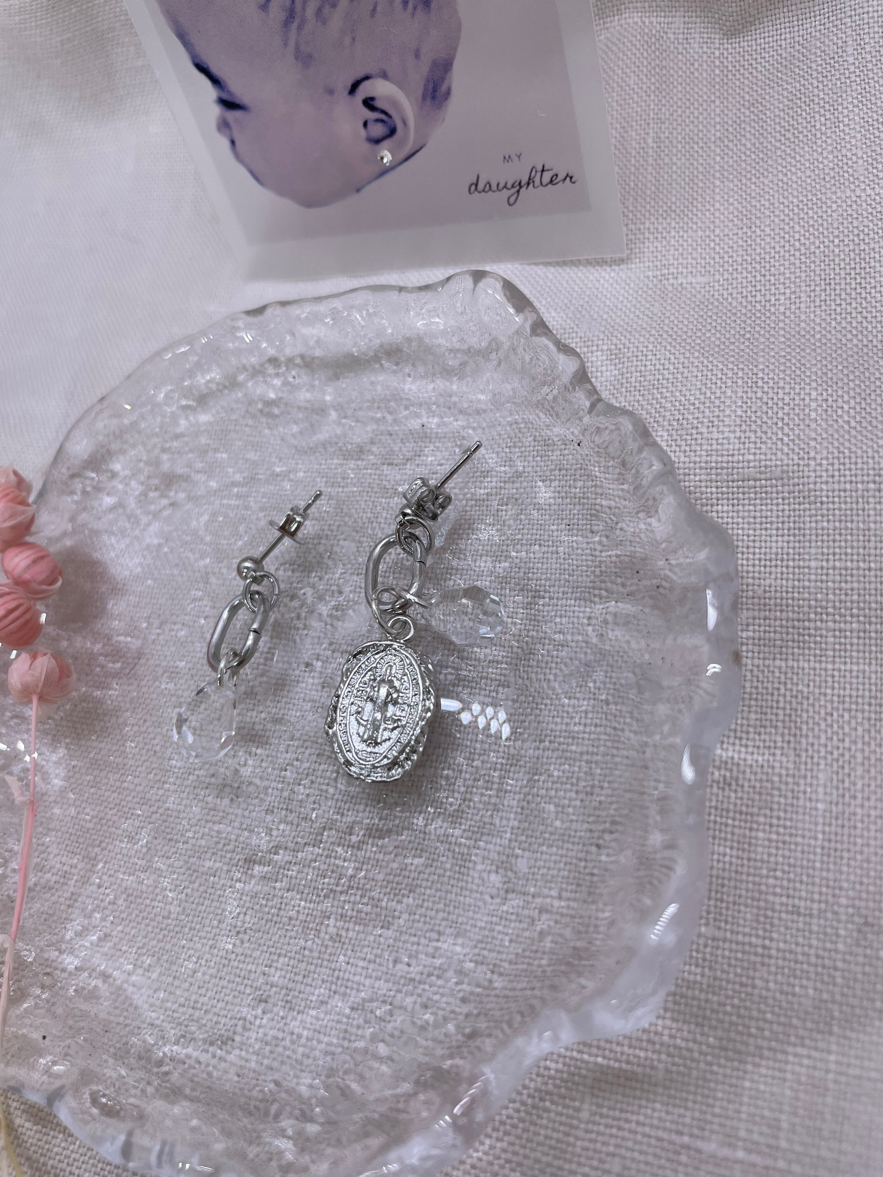 マリアモチーフと透明のスワロフスキーを使ったピアス(0073)