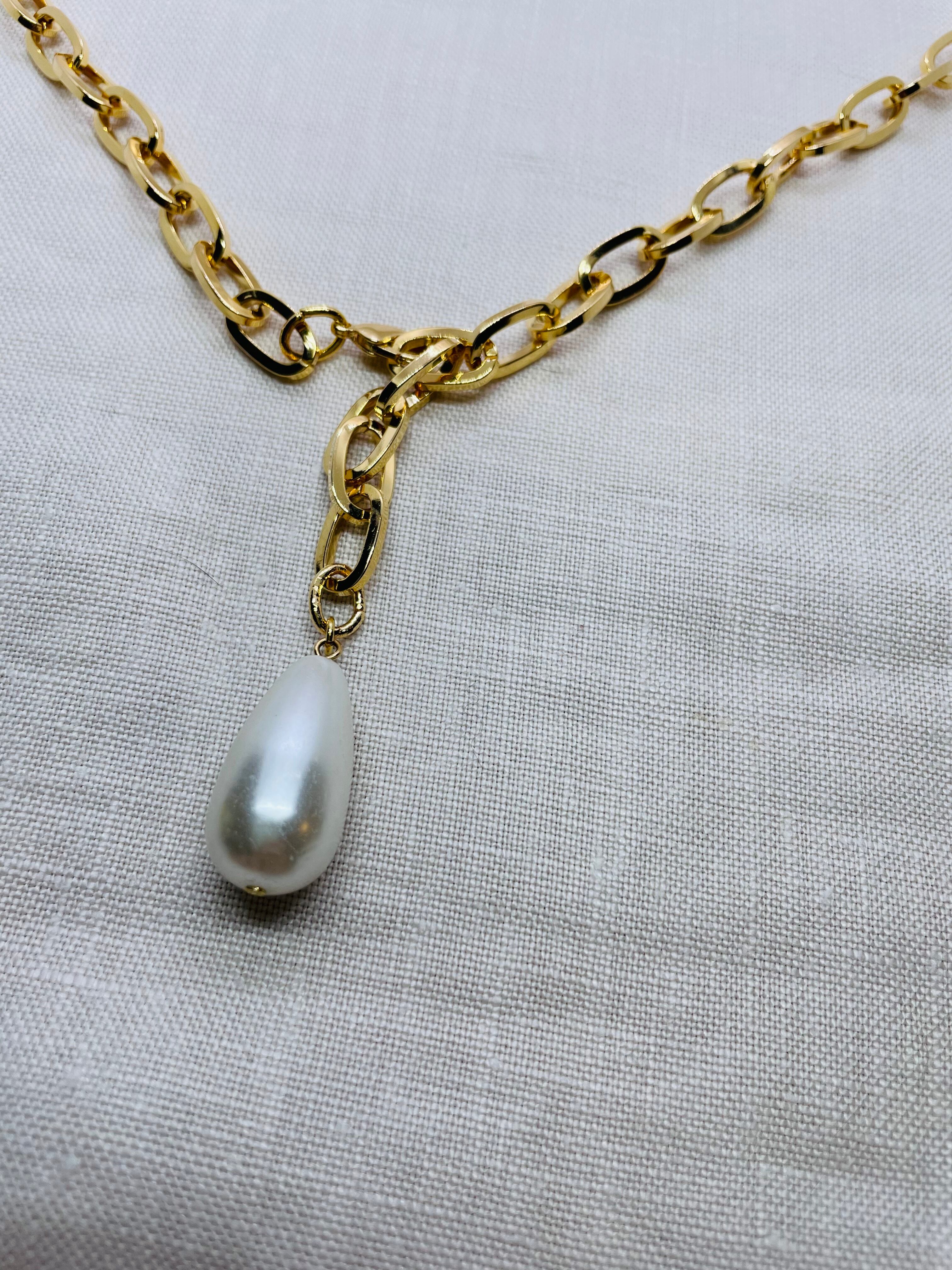 淡水パールとドロップ樹脂パールの2wayネックレスです。
